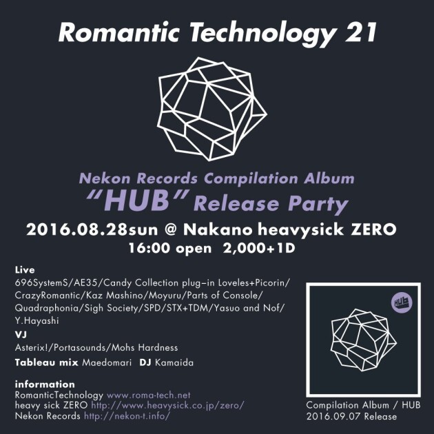 2016年9月7日にリリースされるNekon Records Compilation Album 「HUB」に収録された楽曲の全アーティストが出演のリリースパーティ。