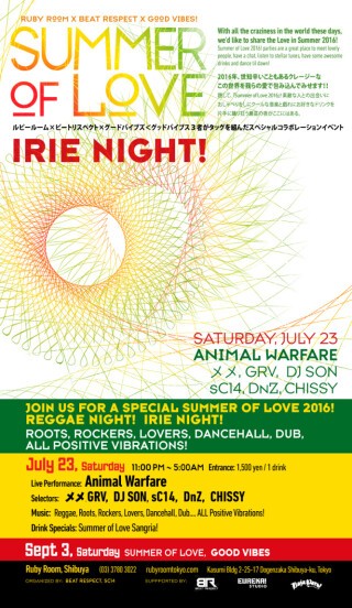 Join us for a special Summer of Love 2016! Reggae Night! Irie Night!