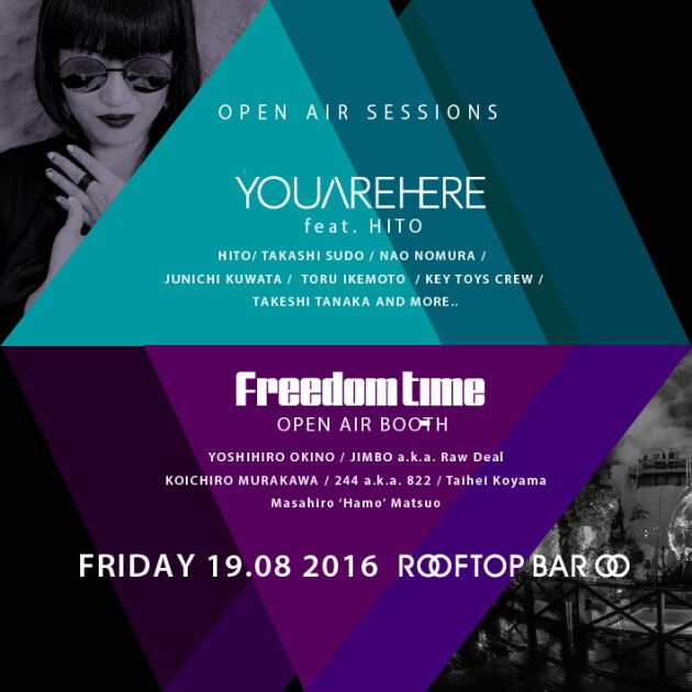 8/19fri 道頓堀NEW JAPANビル屋上にあるRooftopBar OOにてテクノパーティー"YOUAREHRE"とKYOTO JAZZ MASSIVE 沖野好洋氏率いるFREEDOM TIMEのダブル開催が決定!YOUAREHEREのゲストにはベルリンよりHITOが登場
