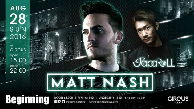ロンドン出身でオランダを拠点に活動するProducer/DJであるMatt NashがBeginningにて初来日。
