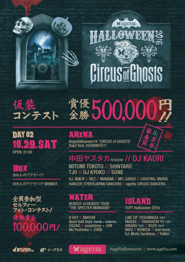 日本最大級のスケールでお届けする #ageHalloween16 今年はゴーストたちがサーカスをテーマに、真夜中の舞踏会を繰り広げる。