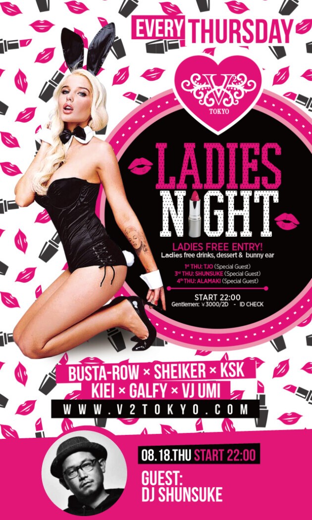 ☆★木曜日のV² TOKYOはコンテンツ盛り沢山!Ladies Night開催★☆