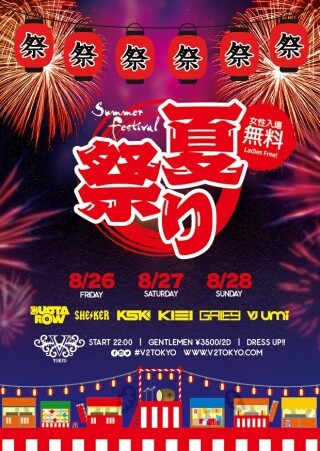 「祭り」を連想させる、本物さながらの屋台も登場し、V2 TOKYOでしか味わえない《夏祭り》を演出します☆
