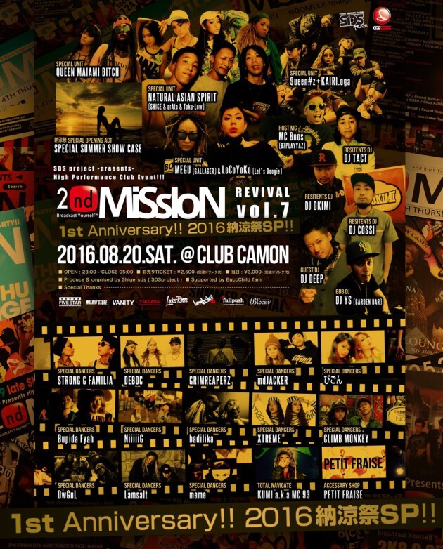 【2nd MiSsIoN -REVIVAL- vol.7】8/20(土)☆偶数月第3土曜開催『2nd MiSsIoN-REVIVAL-』1st Anniversary!!2016納涼祭SP☆☆2nd MiSsIoNの1周年にふさわしいハイパフォーマンスな豪華ダンサー多数出演★★