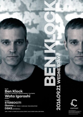 Through his mix with great precision, Ben Klock forms layers of deep, heady groove while filling the gaps with various textures to strike every single sweet spot. The structure of his set shifts like clockwork with sonic cogs on a motorik framework meshing with each other in response to the audience's changing vibes. The result is a dramatic humanoid soundscape of techno nobody but the Berghain staple is able to depict. Making the first return in about a year to Japan that represents his long-awaited debut at Studio, he will bring the country up to date with the genre. Stepping up to create the night with him is Wata Igarashi, an up-and-coming Japanese producer that has made his marks through releases for key labels like Bitta and Time To Express. The Contact floor, on the other hand, features an equally attractive line-up as Stereociti comes back to the capital with the Lost Land album for Don Williams' Mojuba, joining our Motorpool resident DSKE and Gonno, who created a stir with the collaborative effort with Nick Höppner for Ostgut Ton.