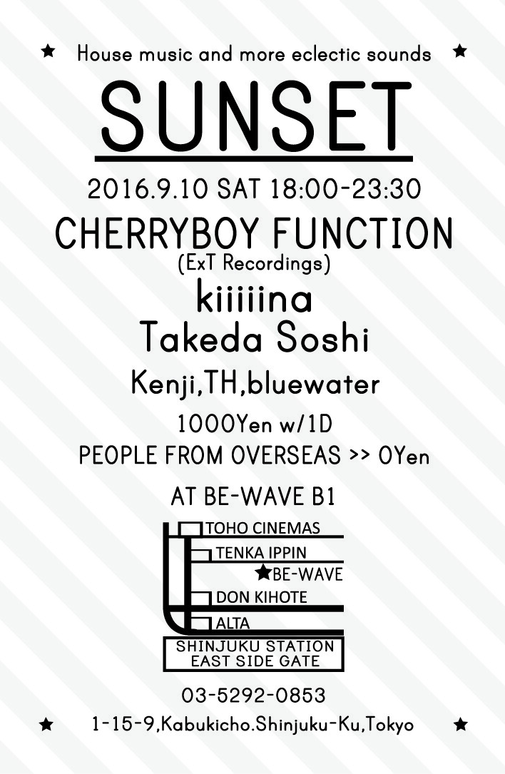 ☆新宿へと移動し34回目。今回のゲストDJはCHERRYBOY FUNCTIONさんが約2年振り2度目の登場。そしてkiiiiinaさん、Takeda Soshiさんが初登場。今回は終電近くまでやる予定です。ご期待ください!