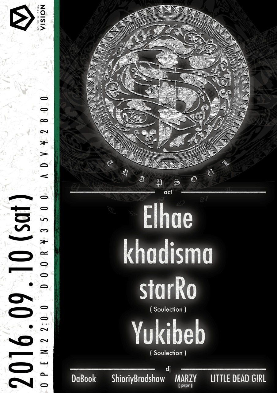 近年そのSoulectionより世界へ発信するBass Music,Trap,Juke,Footwork,HipHop,Houseなど現在のビートミュージックにおける最先端の音を基調にしつつ、往年のSOUL,R&B,JAZZなどのテイストがミックスされ未来的なサウンドとオーガニックなサウンドがブレンドされたフューチャービートミュージックに特化したイベントが”Trap Soul” である。