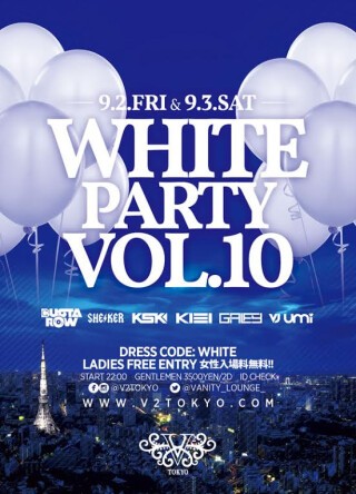 ☆☆9/2(金)3(土)のV2 TOKYOは『WHITE PARTY Vol.10』を開催☆☆