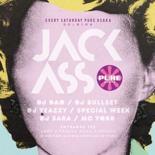 県外からplayしに来たゲストアクトが"大阪No.1"と口を揃え、毎週脅威の盛り上がりを見せる、club pureの土曜日に相応しい看板パーティー。HipHopを中心に、新旧問わない週末ならではの選曲で、インターナショナルなフロアーは常に熱狂。オーディエンスの95%が飲み放題を利用し、他では得られない感覚を楽しむ事が出来る。