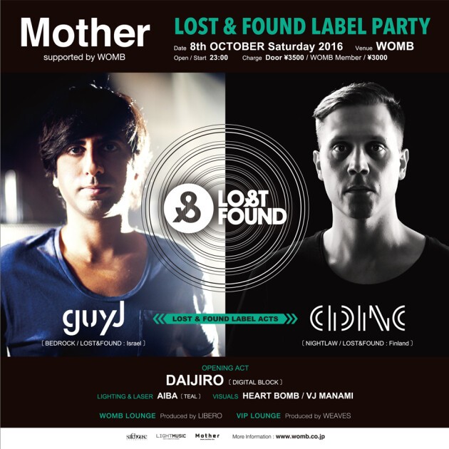 秋口に開催される MOTHER 。6月に ALBERTO RUIZ と 日本のテクノゴッド KEN ISHII を迎えて MOTHER らしい素晴らしいパーティーとなった後の次の企画は、豪華に海外より2名のゲストを迎える。BEDROCK からのリリースでも有名な GUY J と シーンの新鋭アーティスト CID INC が登場する。