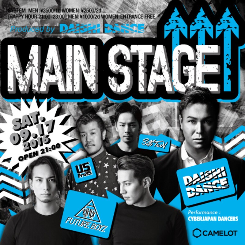 7月より新しくスタートしたDAISHI DANCEがプロデュースするニューパーティー「MAIN STAGE↑↑↑」。Ultra Japan出演を翌日に控えたDaishi Danceに加え、こちらもUltra Japan出演のCYBERJAPAN DANCERSも今回登場!