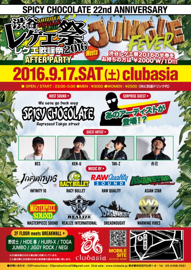 渋谷レゲエ祭のアフターパーティーは渋谷クラブ・エイジアで!!!