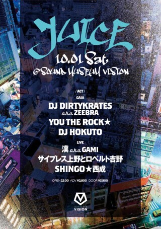 厳選されたDJに加え、LIVEに特化した本物のHIPHOPを体現出来る硬派なPARTY “juice”。