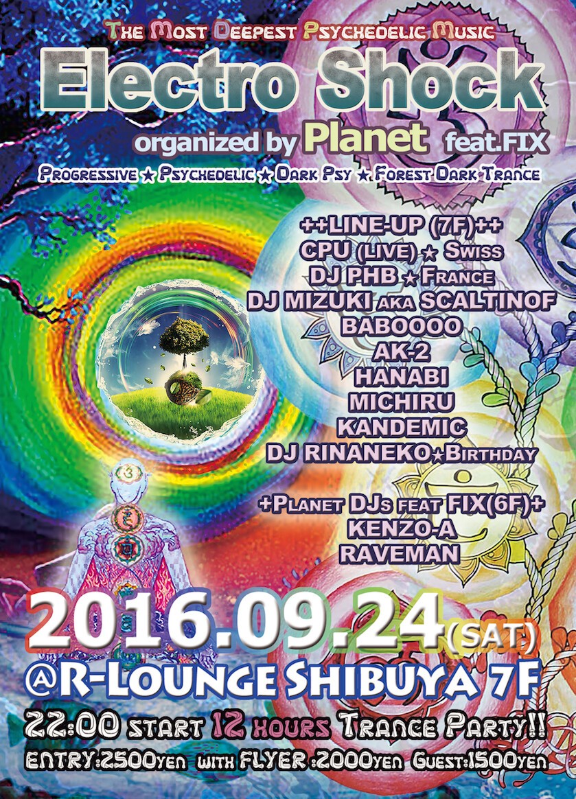 Planet Party再稼働第一弾は渋谷R-Lounge 7Fにて、Hard Techno team "FIX"とfeatringで、12 hours Trance party開催♪