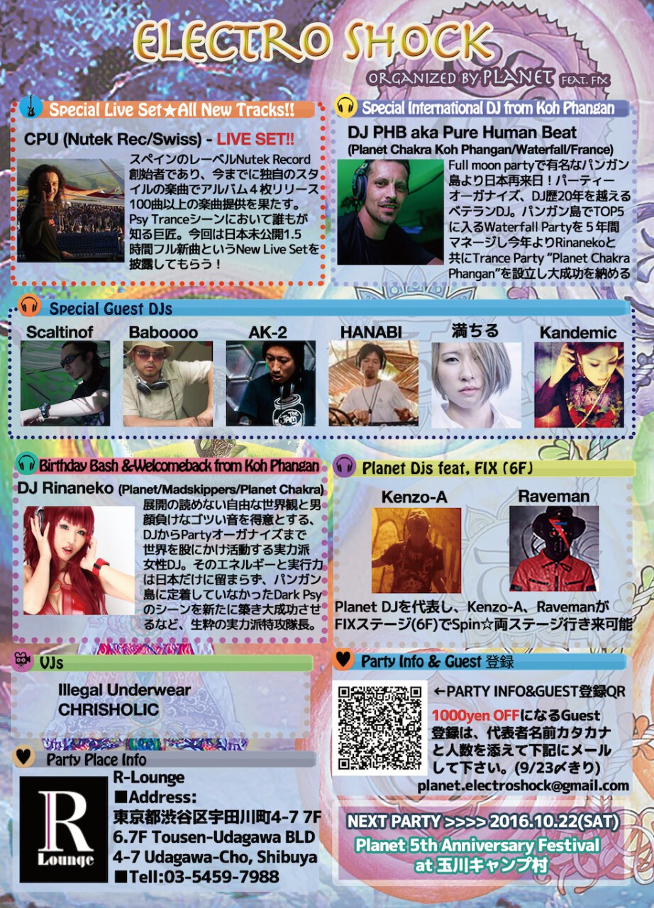 ADD 1000yen off guest list : Send your name and how many people with to "planet.electroshock@gmail.com" (dead line : 9/24 21:00)