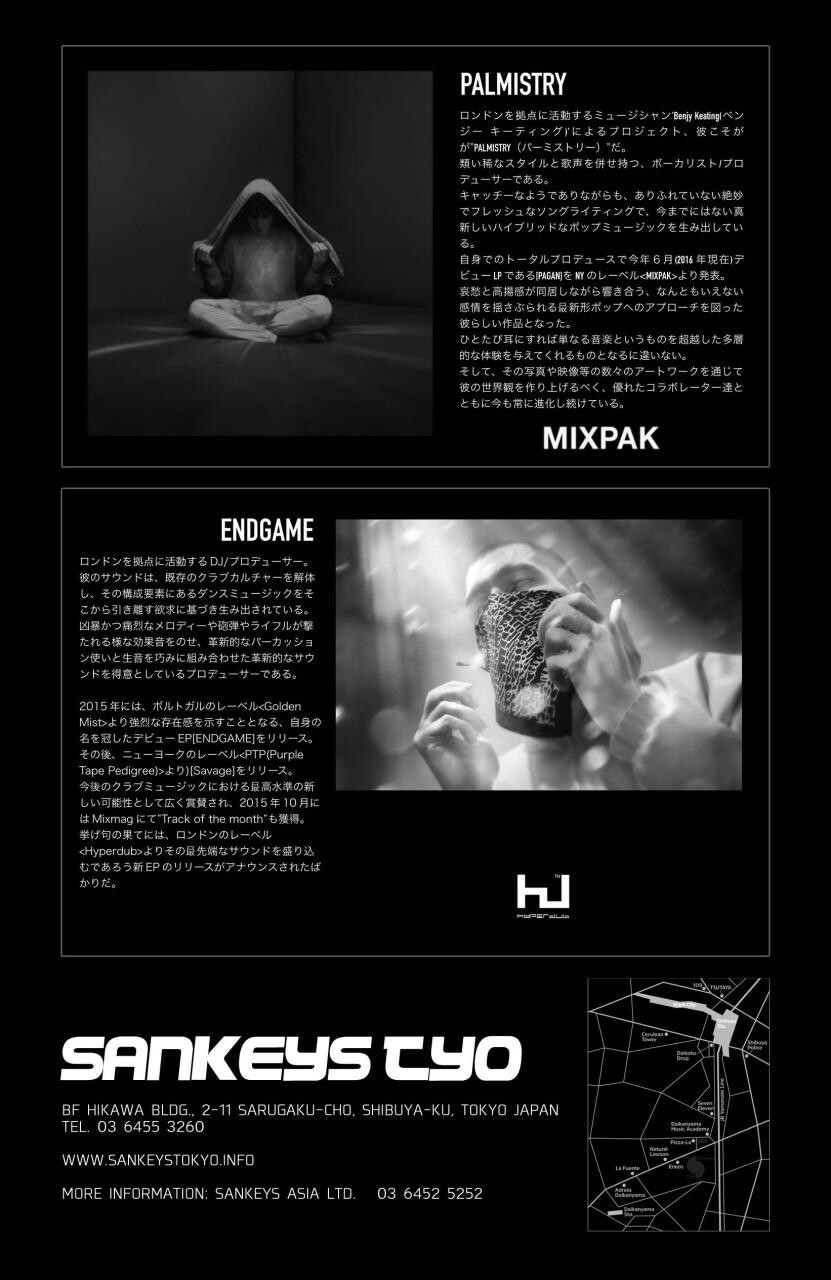 MIXPAK(NY)の新星Palmistry、Hyperdub(LDN)の異端児ENDGAME。 渾身のW来日ツアーが東京・神戸の2公演にて開催決定!!