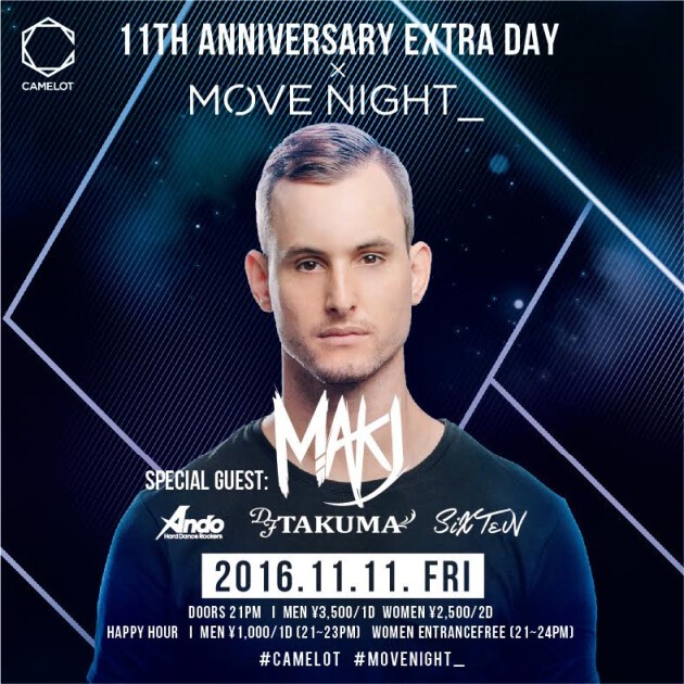 11が並ぶ11/11に"11th Anniversary Extra Day"と称した11周年イベントの延長戦を人気Party"MOVE NIGHT_"とのコラボレーションイベントとして開催!!!