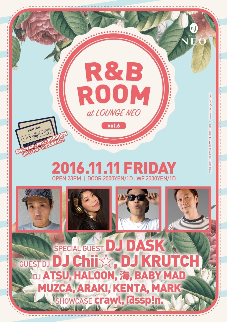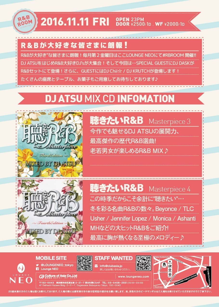 毎月第2金曜日はここLOUNGE NEOにて #RBROOM 開催!! DJ ATSUをはじめR&B大好きDJ'sが大集合!