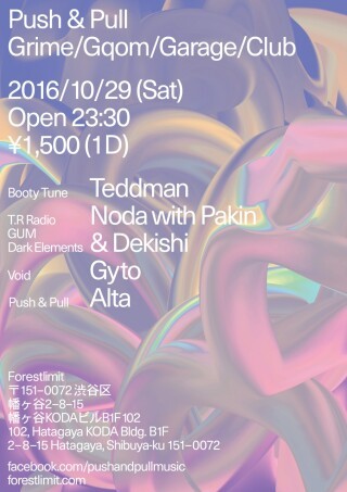 Now following Alta’s move to the city we’re stepping things up with our first night in Tokyo and strengthening the emerging ties between the underground scenes in China and Japan. On Saturday 29 October we’ll be taking over Forestlimit with a line-up spanning grime, gqom, footwork and jungle featuring DJs from some of Tokyo’s most essential crews: Booty Tune’s Teddman, T.R Radio’s Noda alongside MCs Pakin and Dekishi, Gyto from UK bass crew Void, and Push & Pull co-founder Alta. Don’t miss it.