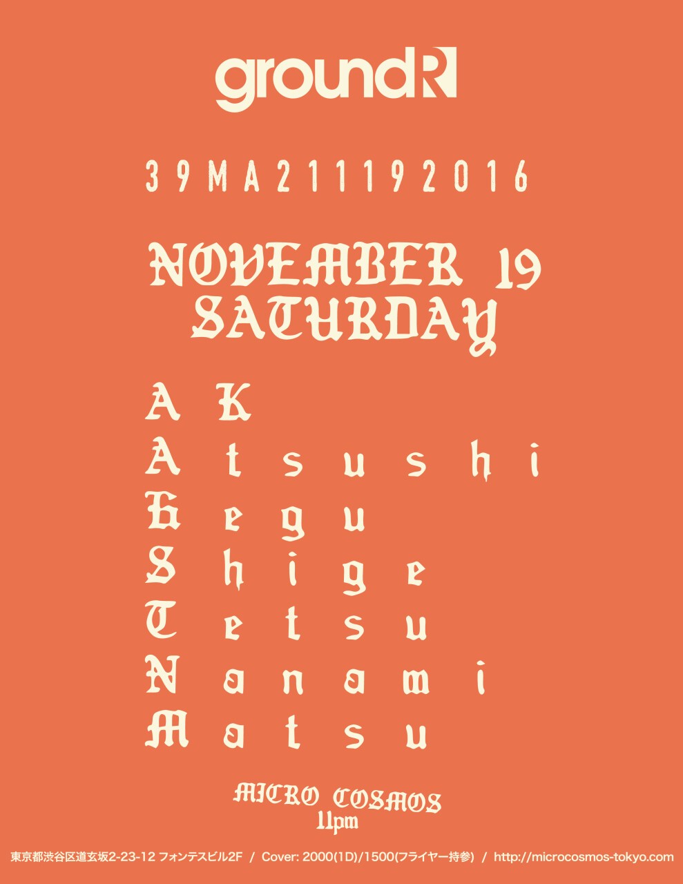 10年以上に渡るアンダーグラウンドの殻を出て、本邦初となるMATSUを始めとするground Rクルーが凱旋帰国する一夜。