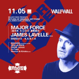 Legend of Japanese Label=MAJOR FORCEの名作が7インチで蘇る奇跡のリリースパーティーになんとDJ KRUSH、DJ Shadowなどを輩出し、Ninja Tuneと共に90'sのクラブ・カルチャーに絶大な影響を与えたMO'WAXの設立者JAMES LAVELLEが奇跡の来日!