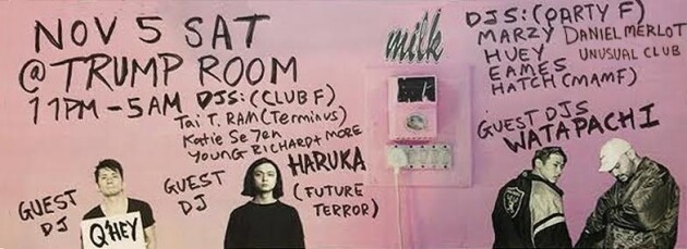 After the last two epic TRUMP ROOM MILK parties, MILK is back again at the TRUMP ROOM. After creating a bunch of great Milk Parties at Trump Room last year, and events such MILK Presents ARC Opening party, Milk is back at the Trump Room yet again. Known for past events such regular SNIFF SNIFF events and TOKYO SCHOOL NIGHTparties, hosting a variety of Events such as Magazine / CD lauches (Modular Records) fashion week parties and collaborations (FUCKING FRIDAYS, NYLON JAPAN, MAD DECENT ETC) this time sees the return of MILK, over 2 levels.