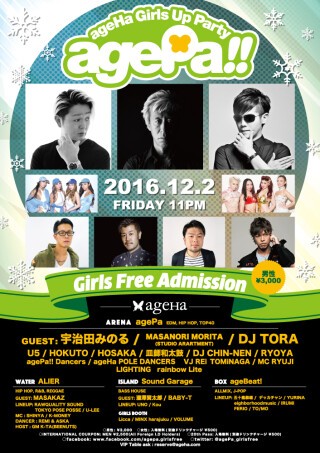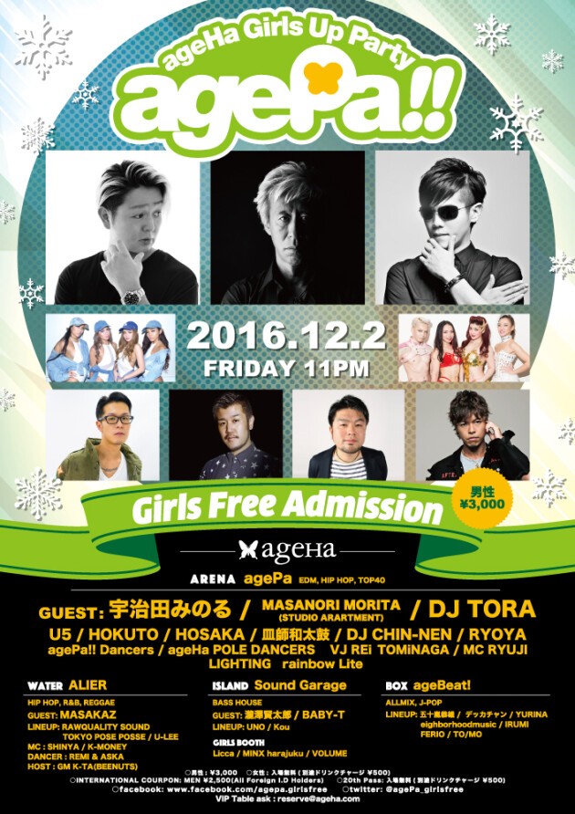 12月のagePa!!はSPECIAL GUESTにレジェンドDJ 宇治田みのる、MASANORI MORITA(Studio Apartment)、DJ TORAが登場!