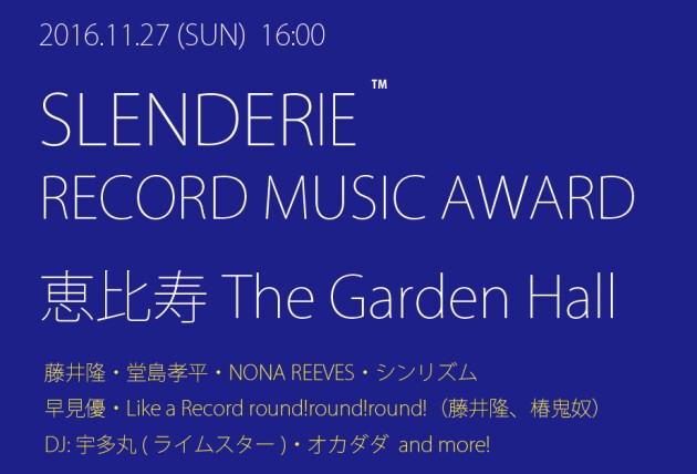 今年は“SLENDERIE RECORD MUSIC AWARD”と銘打ち、豪華ゲスト陣を迎え、非常に音楽色の濃い内容となっているとのこと。