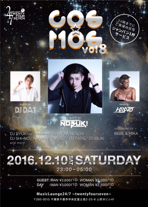 MAIN DJには先日の247周年記念パーティではメインゲストを務めたHAYATOが登場します。