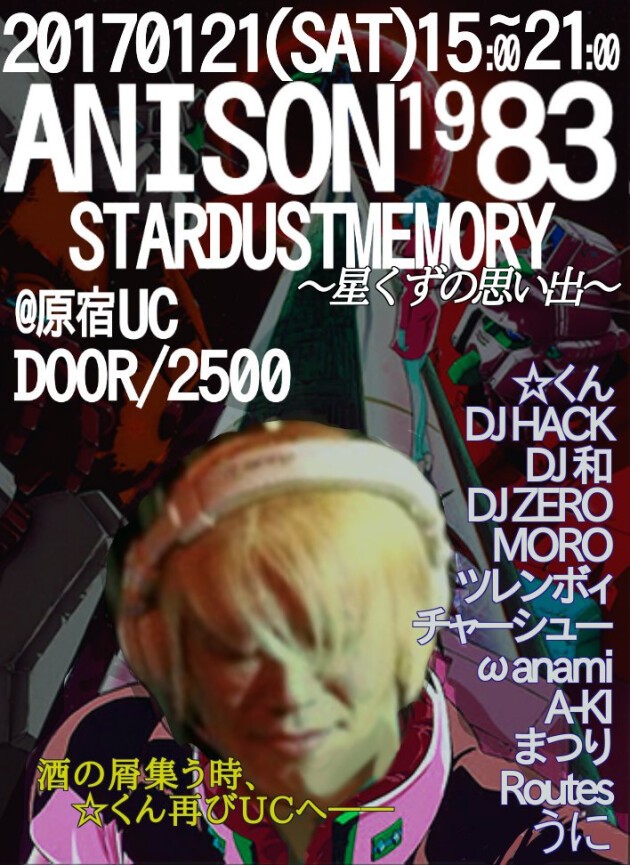 一年戦争が終結して3年、 UC移転化計画に基づき原宿UC閉店が提唱された。しかし、アニ学軍の残党ωanami・フリートがこの情報をつかんでいた。極秘作戦「星の屑作戦」実施に先立って、かつてUC新米パイロットであった☆くんを戦乱の地福島より召喚し、最後のイベントを開催せんとスペースコロニー原宿基地に襲来するーーー