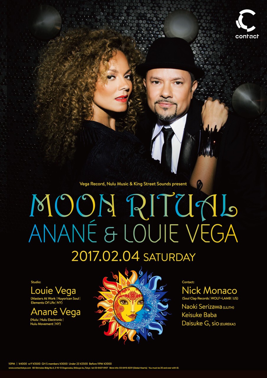 今年2月に開催される第59回グラミー賞にて、2016年3月にリリースしたアルバム”LOUIE VEGA STARRING…XXVIII”が最優秀ダンス/エレクトロニック・アルバム部門でノミネートされているLouie Vega、待望の再来日決定。昨年秋には、Kenny Dopeとのユニット、Masters At Workとして10年振りに来日を果たして話題を呼んだばかりだが、今回は妻であるAnané Vegaと共にMoon Ritualをここ日本で開催する。またSoul Clapと共にアルバムでフィーチャーされているNick Monacoも出演。