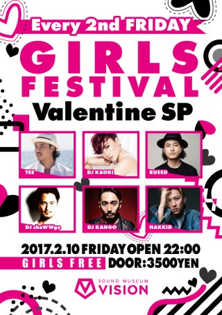 スタート以来、驚異的な動員力と盛りあがりでシーンに強い存在感を発揮して きた、女性入場フリーイベントのパイオニア”GIRLS FESTIVAL”。その勢いは、 2015年も衰えそうにない。「ヴァレンタインスペシャル」と題された夜、DJには、パーティの顔といえるDJ KAORIとKANGOが登場。そして毎回注目のライヴゲ ストには、過去幾度も”GF”のフロアを揺さぶってきたTEEと2007年にわずか18歳でroad to 横浜レゲエ祭で最年少で優勝し2017年の始まりと共に待望の5thAlbum「ABANDON」をリリースしたばかりのジャパニーズレゲエシーンの革命児 RUEEDが決定した。