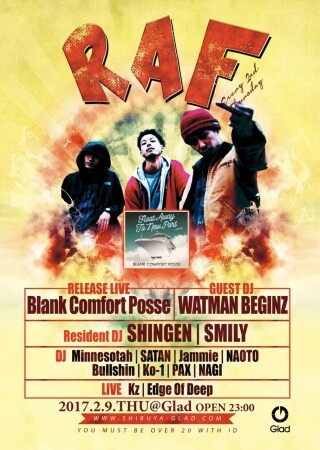 今回は、客演にCHICO CARLITO、WEEDY、トラック・メイカーにJazadocument (BCDMG/Refugee Camp)、%C (HOOLIGANZ)、MASS-HOLEを迎えたBLANK COMFORT POSSEのファースト・アルバム「FLOAT AWAY TO NEW PORT」のリリースLIVEに注目!!