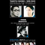 アフターアワーズには昨年に引き続き、ATT, TAKAMIがレジデントを務めるアフターアワーズの決定版『BUZZ × 3』をDJ TASAKA, SUGIURUMN, DJ KYOKOをフィーチャーし開催!