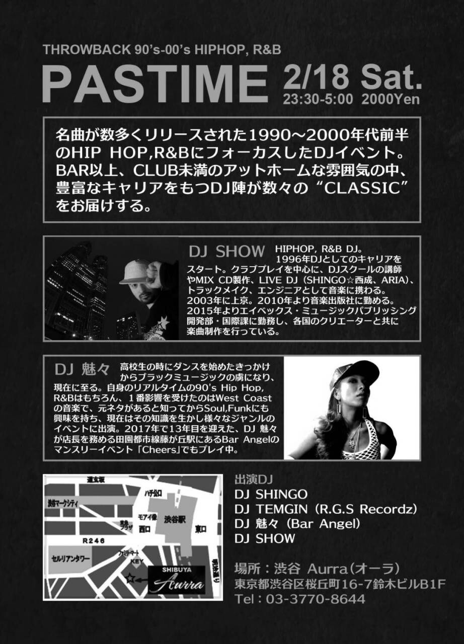 名曲が数多くリリースされた 1990~2000年代前半のHIP HOP, R&BにフォーカスしたDJイベント。