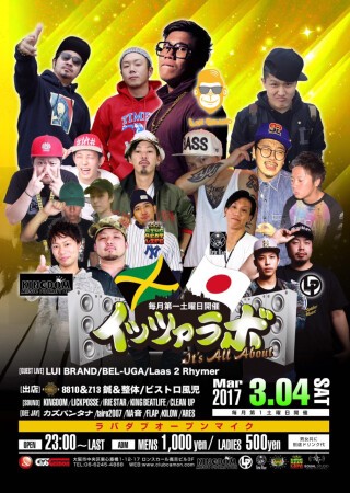 【イッツァラボ 〜It's all about〜】3/4(土)☆毎月第1土曜開催『イッツァラボ 〜It's all about〜』★★GUEST LIVEにLUI BRAND、BEL-UGA、Laas 2 Rhymerが登場☆☆RUB A DUB OPEN MIC★★