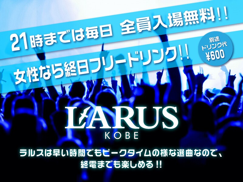LARUS KOBEは、21時までのご入場で「毎日 全員入場無料!!」
