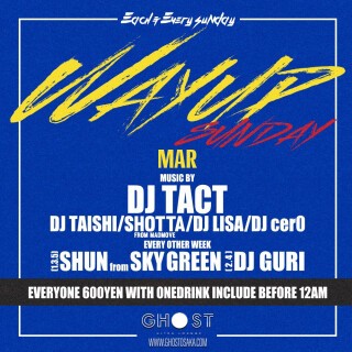 <EVERY OTHER WEEK DJ>SHUN from SKY GREEN (1st, 3rd, 5th Week) / DJ GURI (2nd, 4th Week)