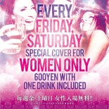 Every Friday, Saturday Special cover for WOMEN ONLY 600yen with one drink included