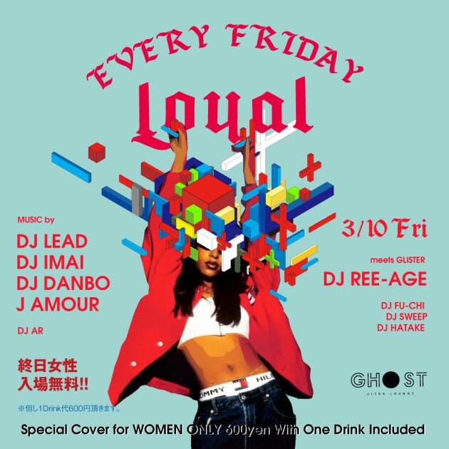 毎週金曜日の上質なクラブミュージックパーティ『LOYAL』!インターナショナルな雰囲気と国際色豊かなオーディエンスが多く、誰でも安心して遊べる選曲や空間を演出!