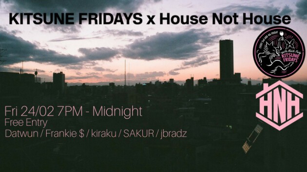 Special edition of KITSUNE FRIDAYS, a fortnightly event at Kitsune in Shibuya produced by ageHa. This edition sees the decks curated by none other than the boys behind House Not House records. Expect nothing but the finest of groovy UK tech in a chill atmosphere. All for the low low price of FREE!