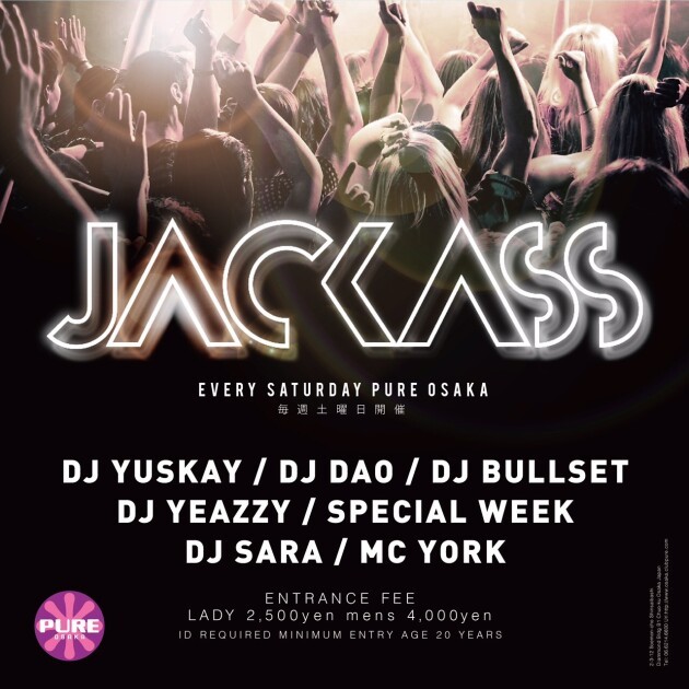 県外からplayしに来たゲストアクトが"大阪No.1"と口を揃え、毎週脅威の盛り上がりを見せる、club pureの土曜日に相応しい看板パーティー。HipHopを中心に、新旧問わない週末ならではの選曲で、インターナショナルなフロアーは常に熱狂。オーディエンスの95%が飲み放題を利用し、他では得られない感覚を楽しむ事が出来る。