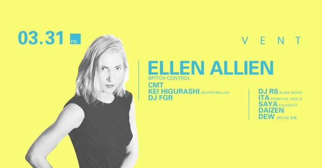 毎日毎晩のように彼女の情熱を音楽的物語を込めたプレイを通してオーディエンスに届けることで、世界の音楽カルチャー形成という重要な役目を果たしてきたEllen Allienが遂に表参道の話題の音楽スポット、VENTに出演!!