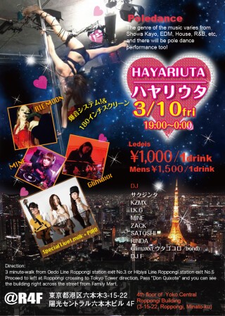 3/10 fri DJ・POLE DANCE ・六本木ハヤリウタ