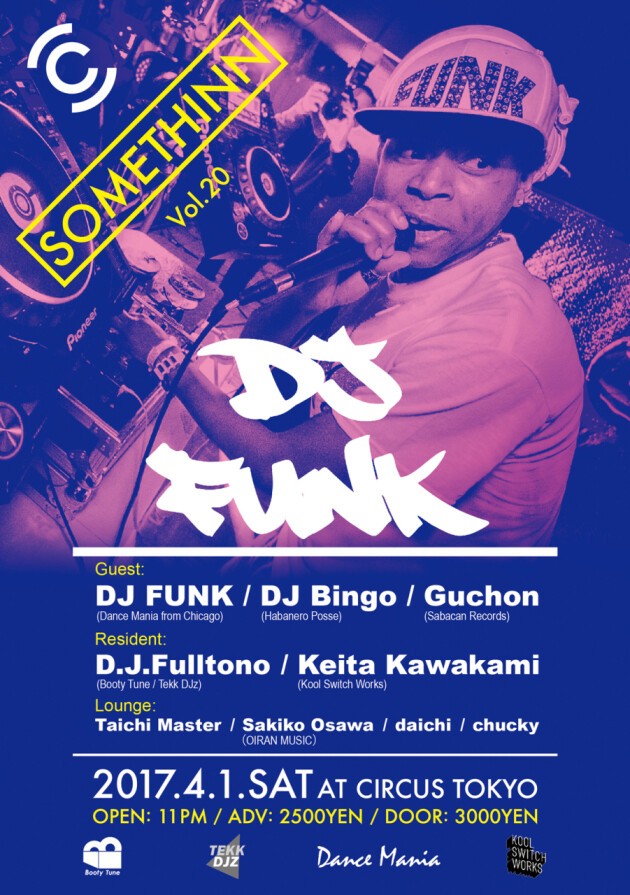 D.J.Fulltono、Keita Kawakami、Hiroki YamamuraによるSOMETHINNがCIRCUS TOKYO,CIRCUS OSAKAで開催!スペシャル・ゲストにシカゴ・ゲットーハウスのレジェンドDJ FUNKが登場!!