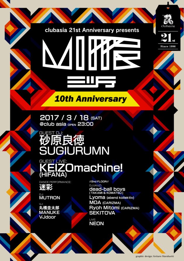 今回は同じく今月アニバーサリーを迎えるclubasiaの21周年とのコラボ企画として、ゲストに迎える砂原良徳、SUGIURUMN、KEIZOmachine! (HIFANA)を筆頭に、現在の、そして未来のシーンを担うアーティストを多数ラインナップ。