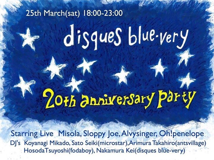 この度ディスクブルーベリーは今年3月25日で満20年を迎えます。これを記念して初の企画イベント "DISQUES BLUE-VERY 20TH ANNIVERSARY PARTY" を開催致します。