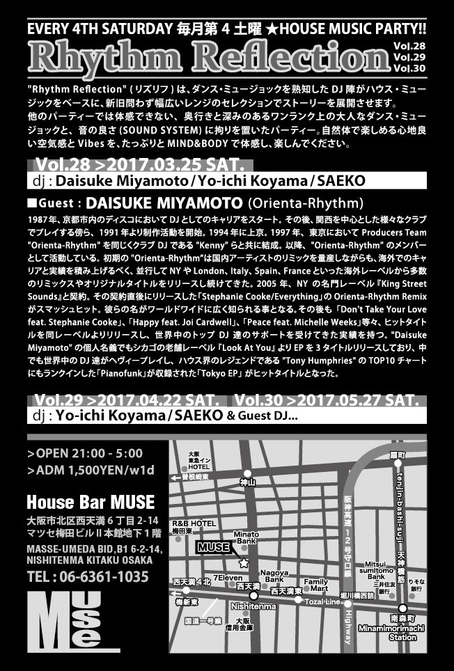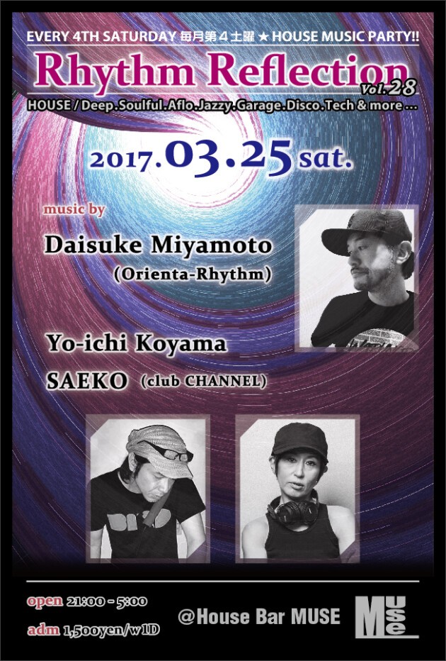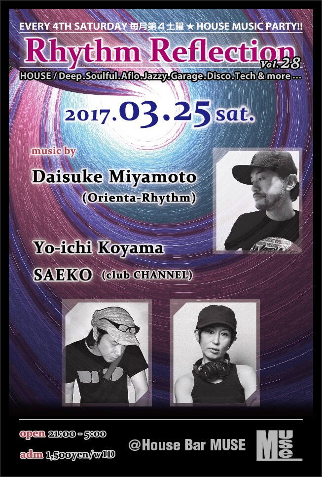 "Rhythm Reflection" is mainly a HOUSE MUSIC party. So come down to feel the natural & warm vibes, and feel good from head to toe!!