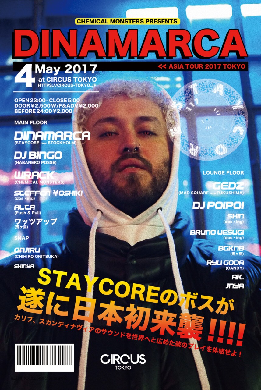 スウェーデン/ストックホルム拠点の大人気レーベルStaycoreを主宰し名だたるアーティストとのコラボレーションでも注目を浴びるヨーロッパクラブミュージックシーンの最重要人物Dinamarcaの初来日公演をCIRCUS Tokyoで開催!!