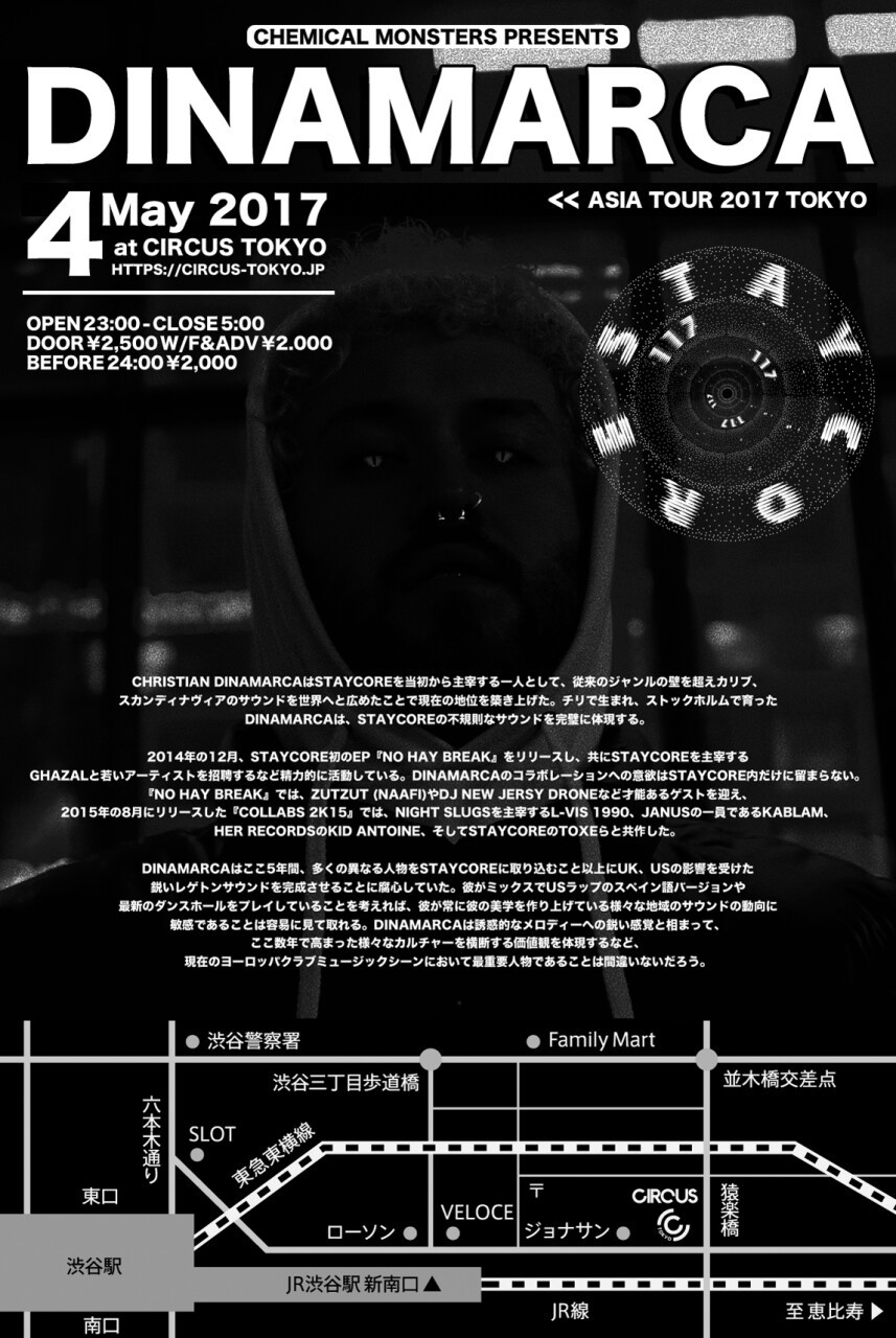スウェーデン/ストックホルム拠点の大人気レーベルStaycoreを主宰し、Zutzut (NAAFI)、L-Vis 1990 (Night Slugs)、Kablam (Janus)、Kid Antoine (Her Records)など名だたるアーティストとのコラボレーションでも注目を浴びるヨーロッパクラブミュージックシーンの最重要人物Dinamarcaの初来日公演をCIRCUS Tokyoで開催決定!